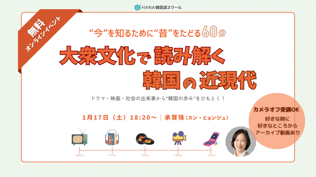 【1月開催 無料イベント】“今”を知るために“昔”をたどる60分——大衆文化で読み解く韓国の近現代