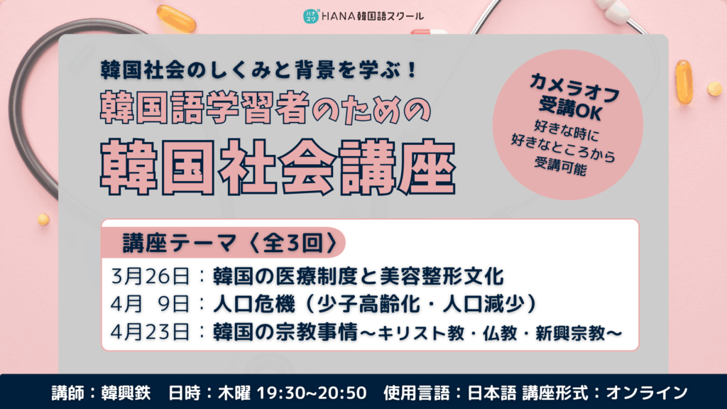 【3月26日開講】韓国社会のしくみと背景を学ぶ!韓国語学習者のための韓国社会講座〈全3回〉
