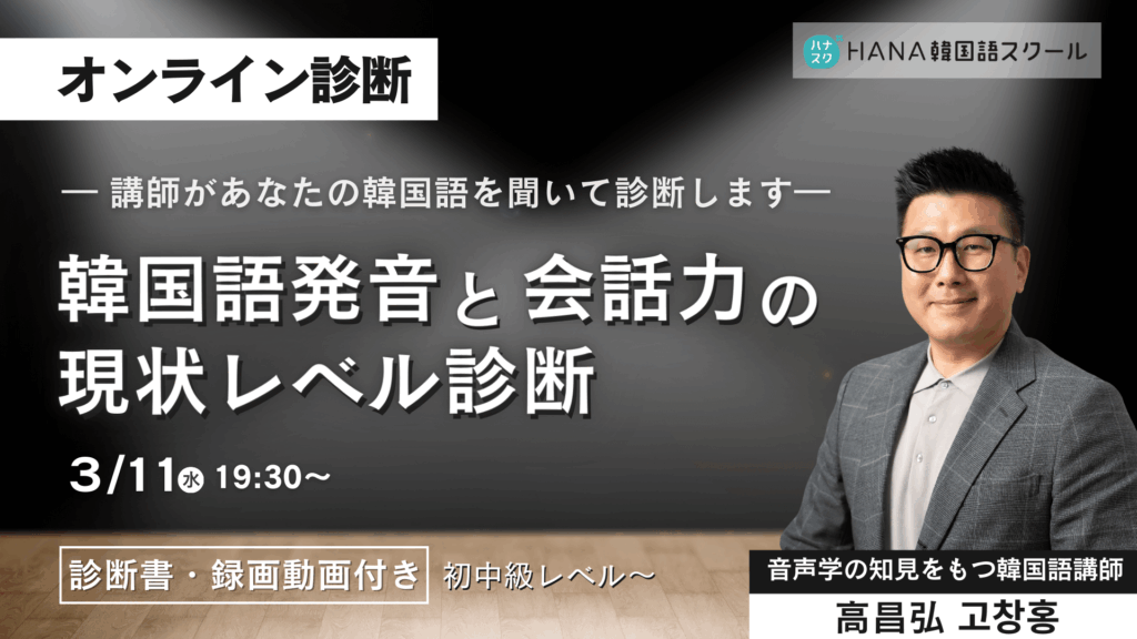 【2026年3月のオンライン診断】韓国語発音と会話力の現状レベル診断(診断書付き)