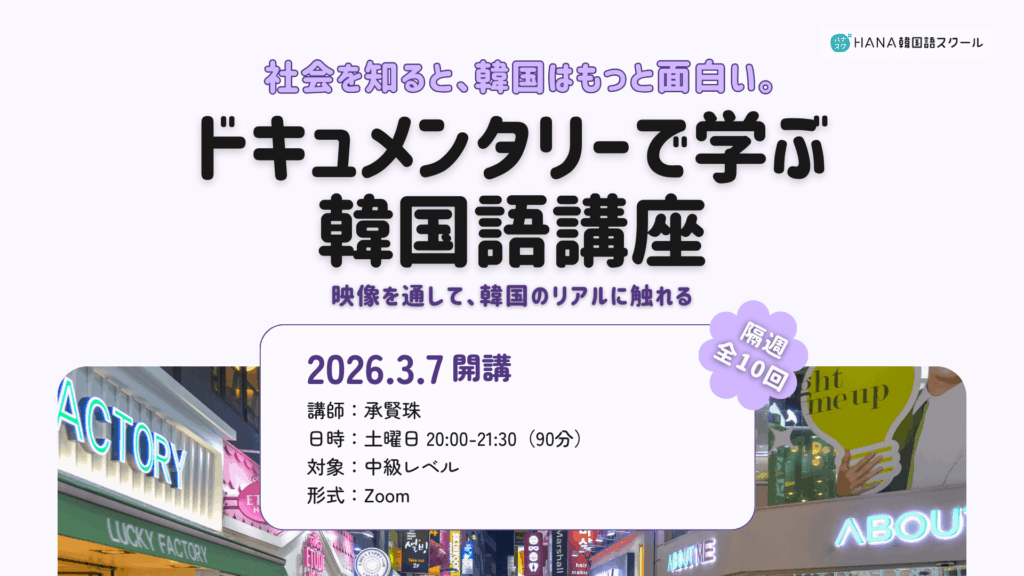 【3月7日開講】社会を知ると、韓国はもっと面白い。ドキュメンタリーで学ぶ韓国語講座〈隔週全10回〉