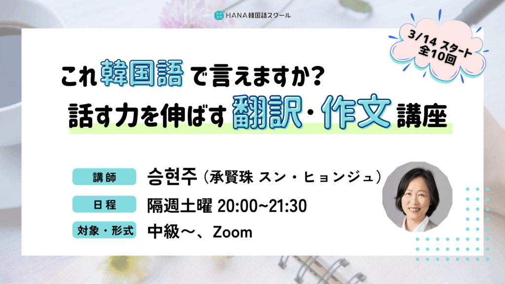 【3月14日開講】これ韓国語で言えますか? 話す力を伸ばす翻訳・作文講座〈隔週 全10回〉