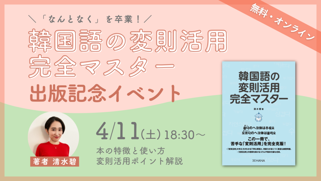 【オンライン・無料】「なんとなく」を卒業!『韓国語の変則活用完全マスター』出版記念イベント