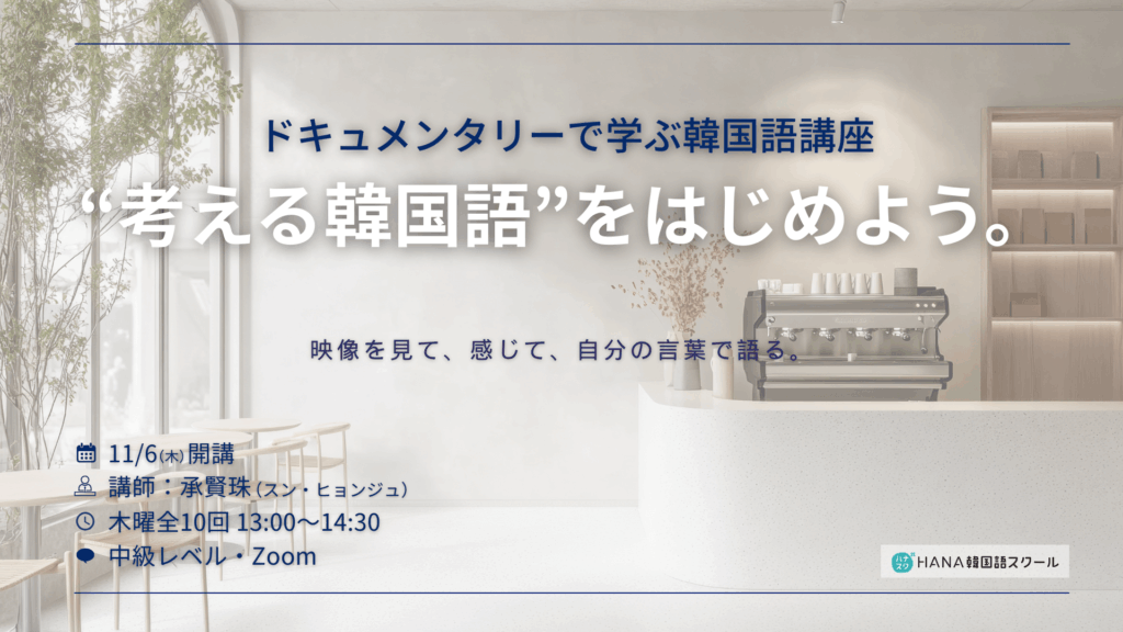 【11月開講】“考える韓国語”をはじめよう。ドキュメンタリーで学ぶ韓国語講座〈全10回〉