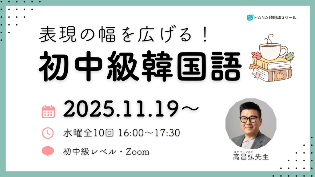 【11月開講】表現の幅を広げる!初中級韓国語〈全10回〉