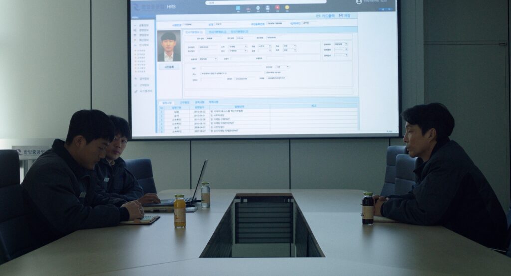 主人公となるのは、誠実な働きぶりを評価されて人事チームに移動してきたジュニ。新しい部署でもすぐに有能ぶりを発揮するが、上層部の意向に左右され、公正さを失っていくリストラに少しずつ疑問を持つようになる。演じているのは、これが初めての主演作となる장성범(チャン・ソンボム)。造船業が盛んな巨済島を舞台にしたドラマ『땐뽀걸즈(恋のステップ キミと見つめた青い海)』(18)での演技を見た監督に抜擢されたという点でも作品との縁を感じる。一見、強面にも見えるルックスだが、その奥に隠された複雑な心情を繊細に表現している。