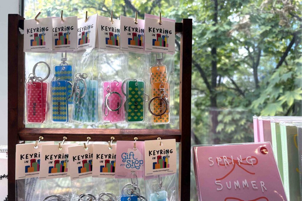 韓国の雑貨ブランド「sundaymorningplate」のキーリングは1万8000ウォン。都市名の裏にその国の言葉で挨拶が書かれています。