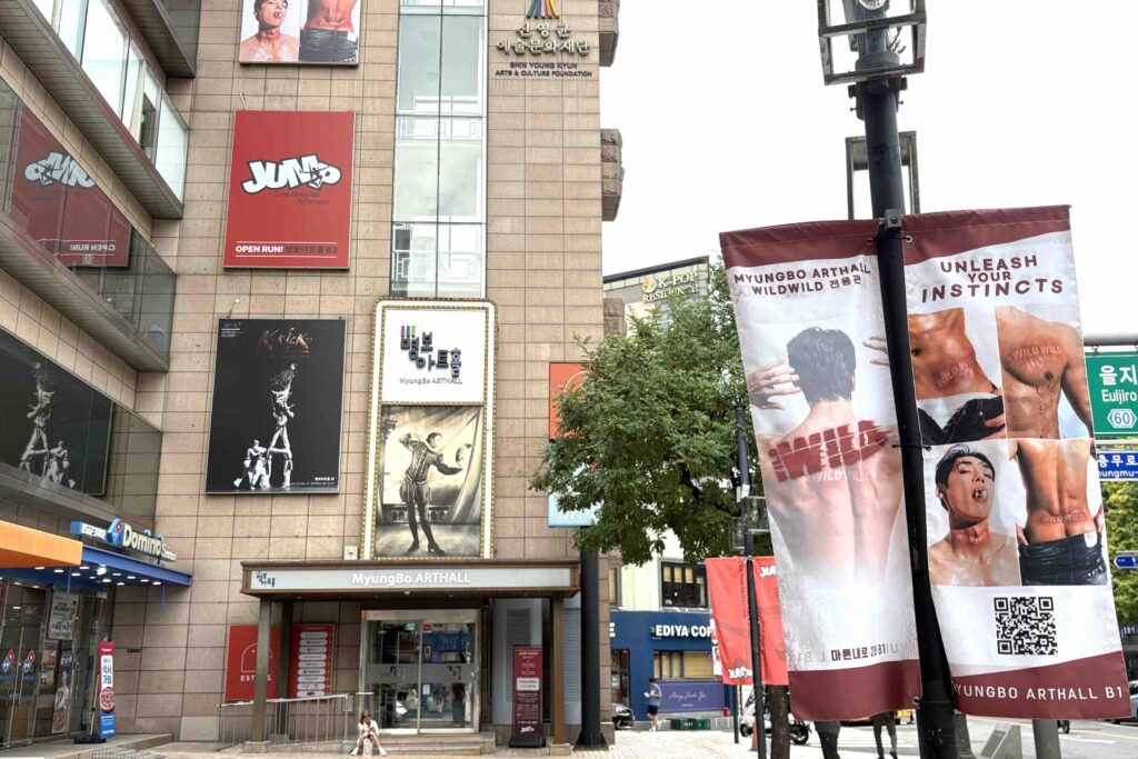 場所は明洞からも徒歩圏内の「명보아트홀(明宝アートホール)」の地下1階。上階では대권도(テコンドー)をベースにしたパフォーマンスで知られる「JUMP」が見られます。