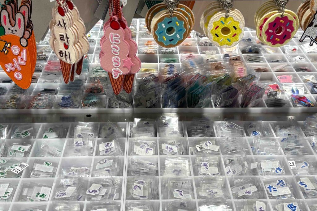 2階にはカスタムワッペンのコーナーも。タグは4500Wから揃うので、明洞にあるワッペンショップよりも安く作ることができます。また、他店では見たことのない、ひらがなのタグを発見! これにはテンションが上がり、私も日本に帰国する前にもう一度来て、友人へのお土産を作ろうと心に決めました。