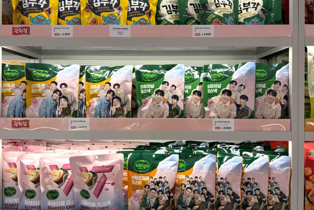 お菓子やラーメンなど、お土産に買いたいアイテムが集まっているので、서울역(ソウル駅)のロッテマートまで行けない人はここで買い物をするといいのでは、と思いました。また、アイドルとのコラボ商品など、限定デザインの商品が多いのも特徴的。