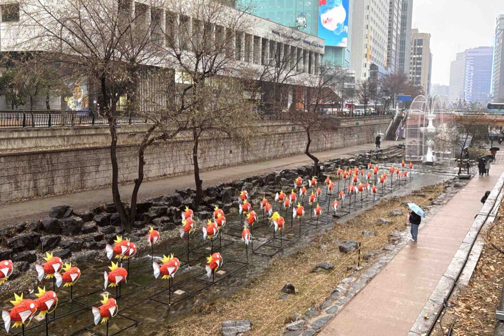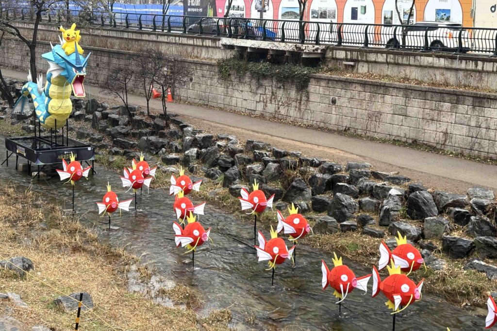 청계천(清渓川)に出たら、ソウルのランタンフェスティバルの一環でポケモンのコイキングが大量発生していました。こちらは1月4日までの催しだそう。韓国伝統の韓紙で作られたコイキングやピカチュウが夜、どんな灯を見せてくれるのか、いつか子供と来てみたい思いました。