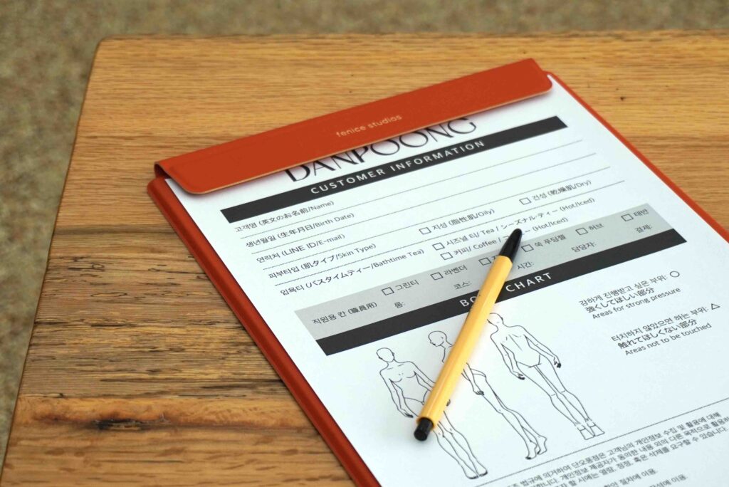 強くほぐしてほしい部分や触れてほしくない部分など、事前にアンケートで答えられるのもうれしい限り。お店には日本語ができるスタッフさんがいるので、韓国語ができなくても安心です。