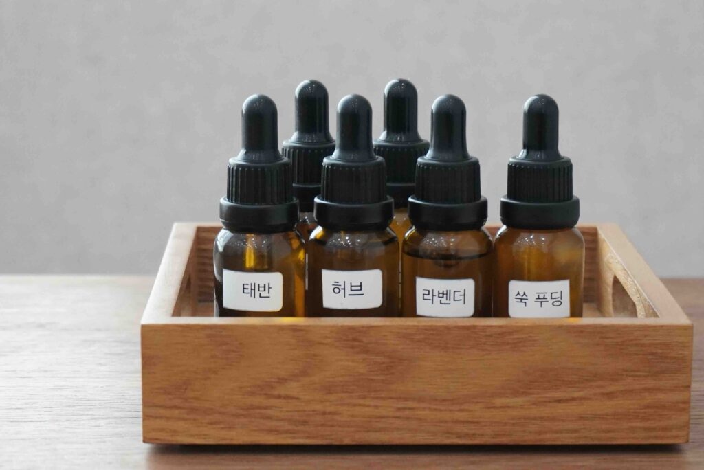 施術によって使い分けるボディオイル。ラベンダーやヨモギ、アルガンなどから選べます。また、はじめにアレルギーのパッチテストが行われるので肌が敏感な人への配慮もあります。