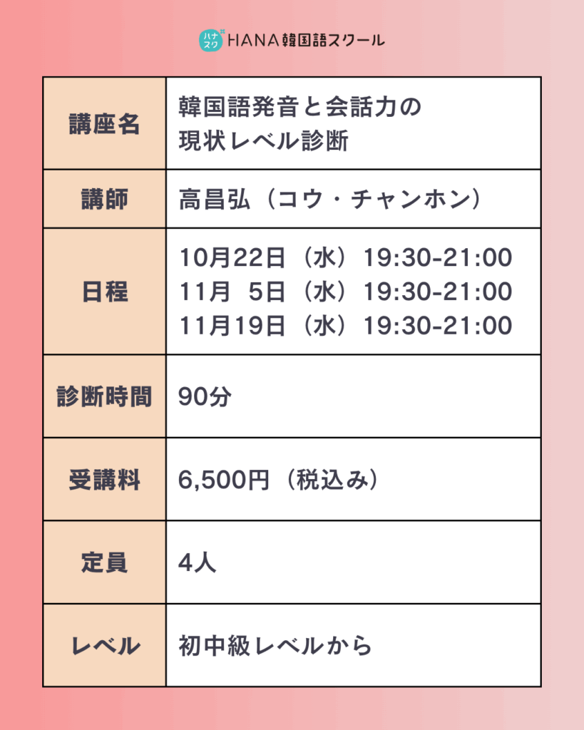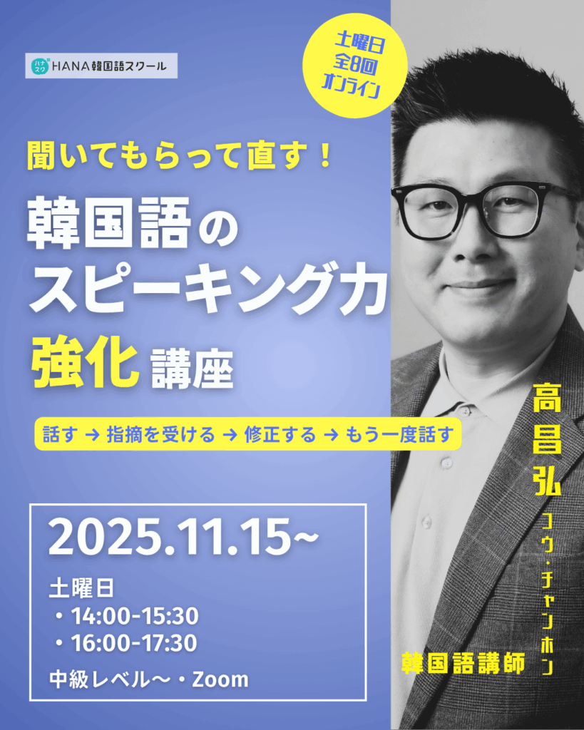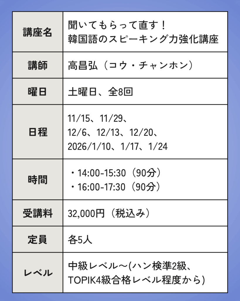 🗣️ 聞いてもらって直す!韓国語スピーキング力強化講座〈全8回〉