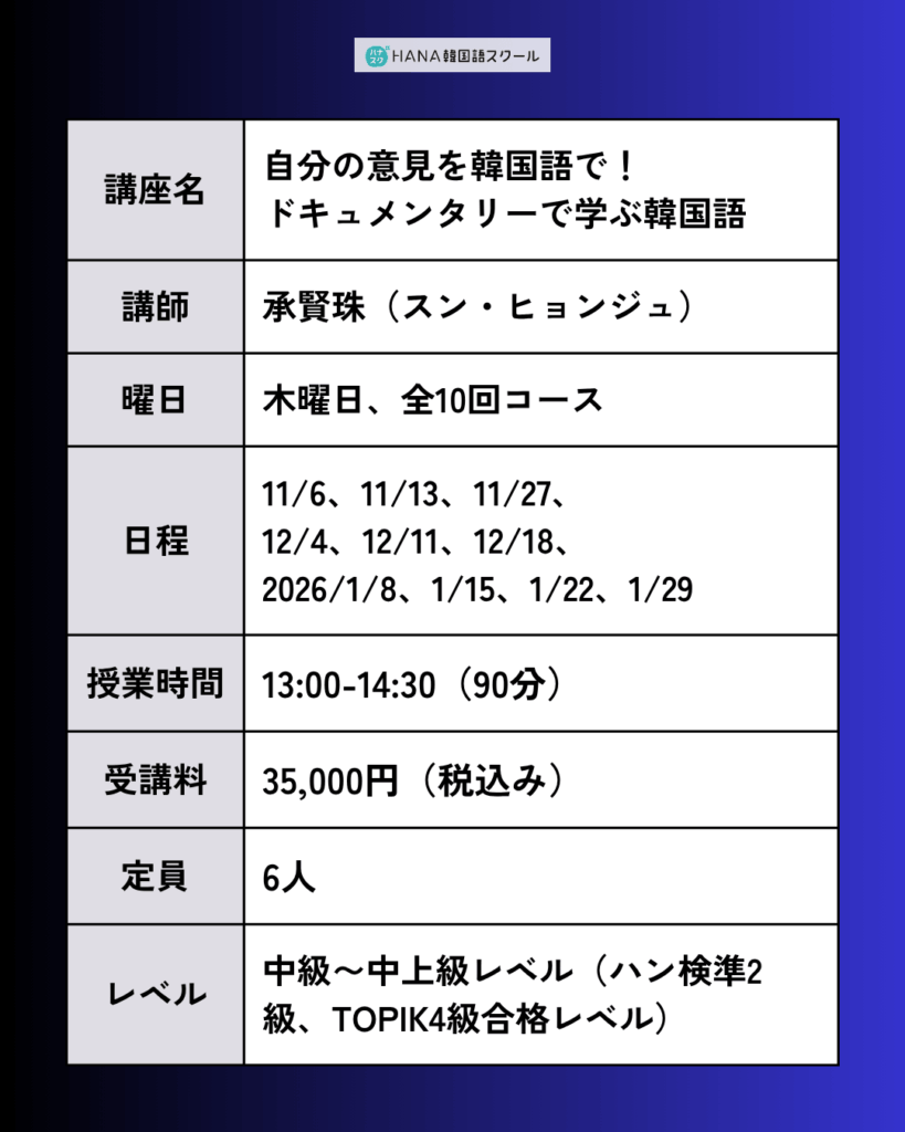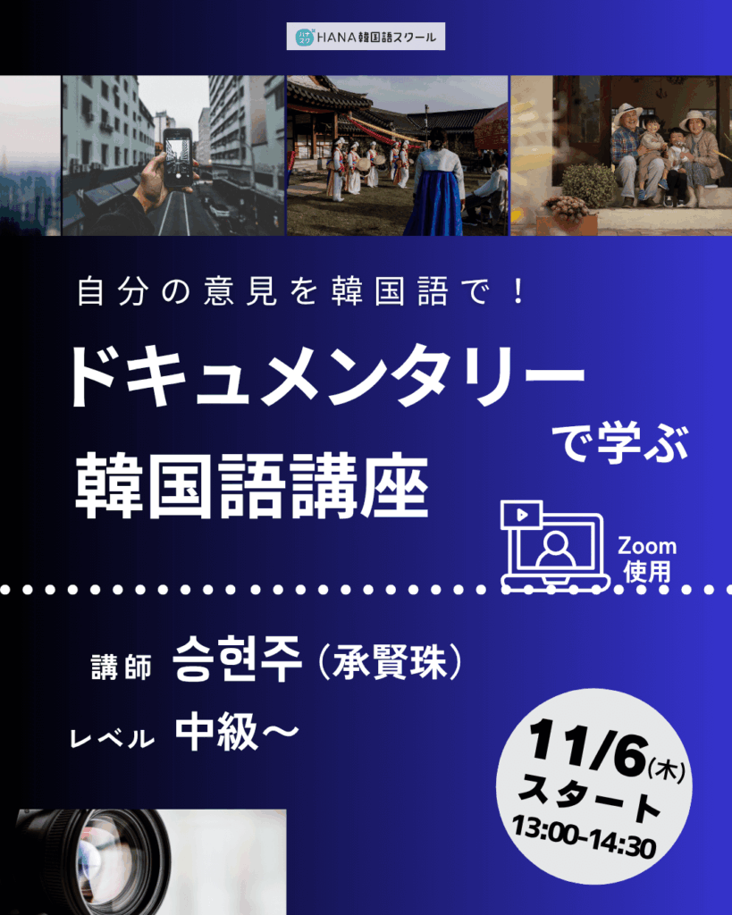 🎥 自分の意見を韓国語で!ドキュメンタリーで学ぶ韓国語講座〈全10回〉