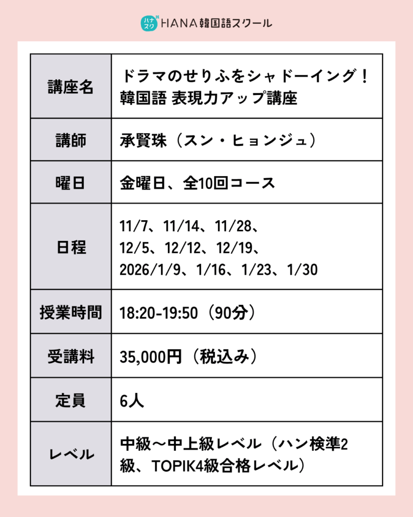 🎬 ドラマのせりふをシャドーイング!韓国語 表現力アップ講座〈全10回〉