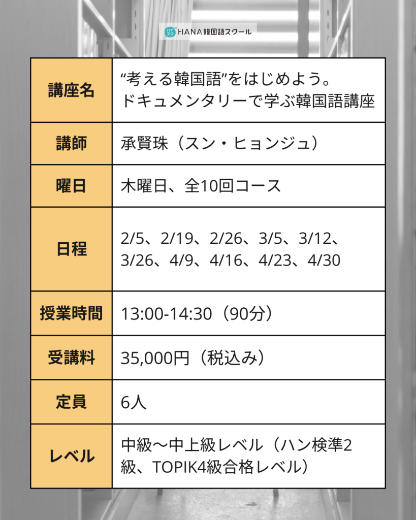🎥 自分の意見を韓国語で!ドキュメンタリーで学ぶ韓国語講座〈全10回〉