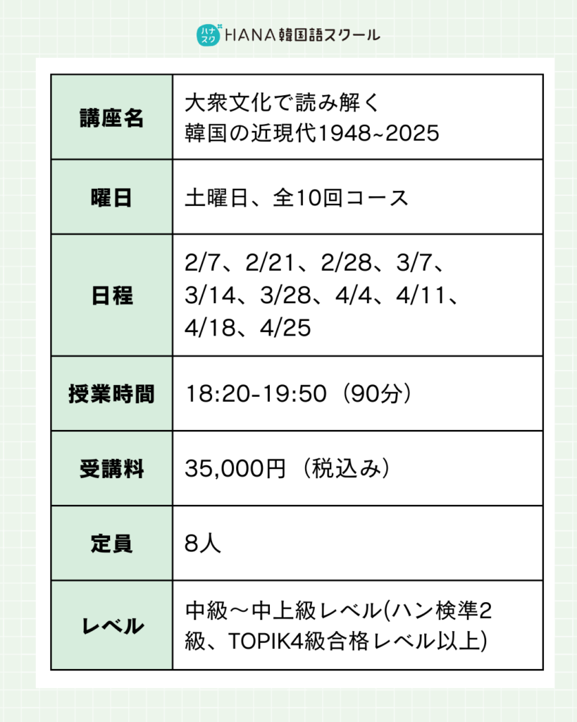 🎬 大衆文化で読み解く韓国の近現代1948-2025〈全10回〉
