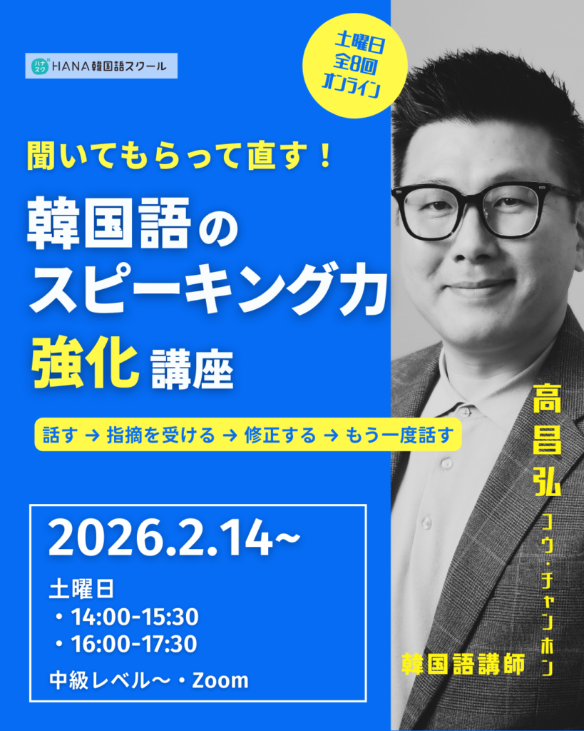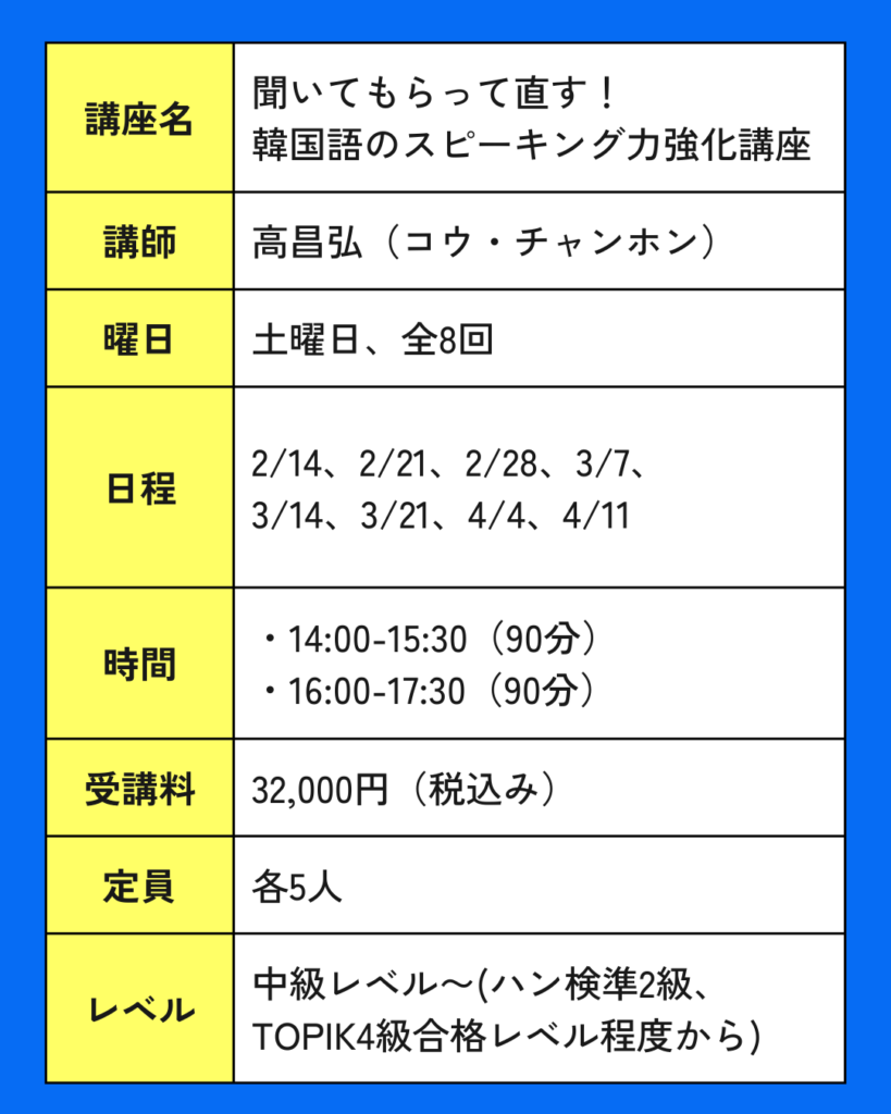 🗣️ 聞いてもらって直す!韓国語スピーキング力強化講座〈全8回〉