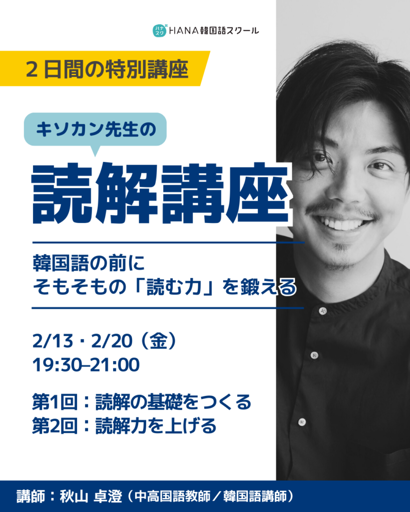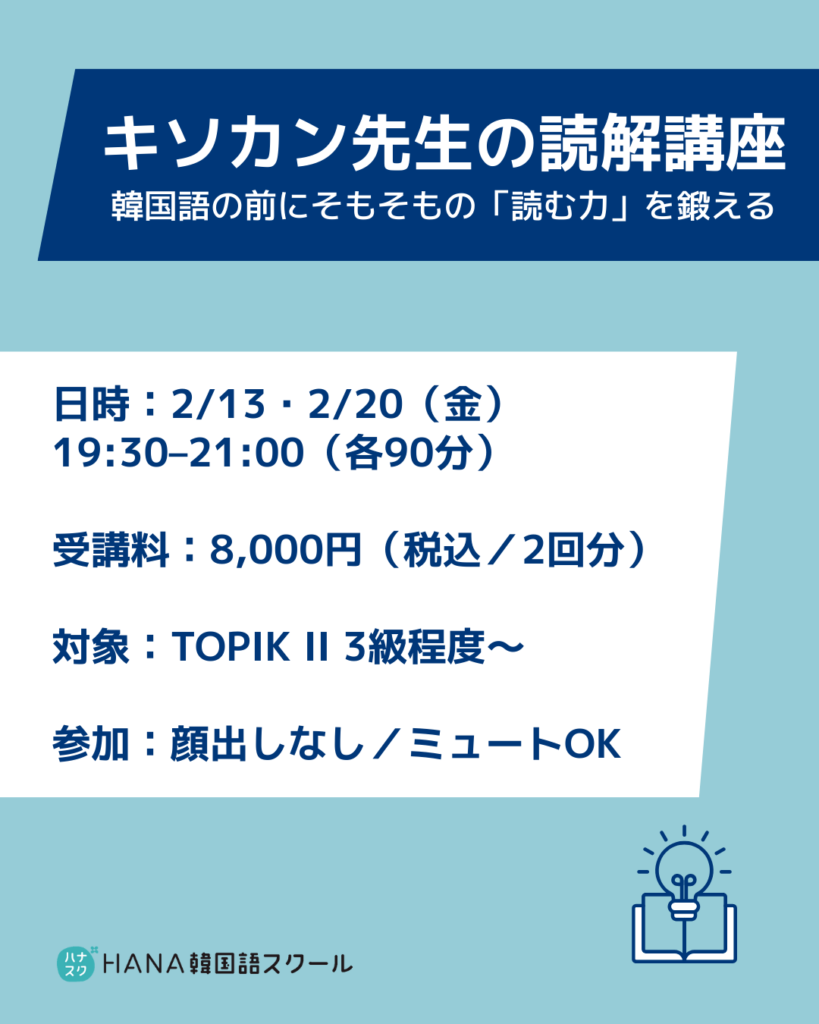 📖【単発・2日間】キソカン先生の読解講座|韓国語の前にそもそもの「読む力」を鍛える