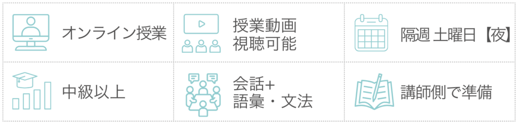 この講座では、事前課題の翻訳&作文・会話作成 → 授業内フィードバック → 会話練習という流れで進めていきます。