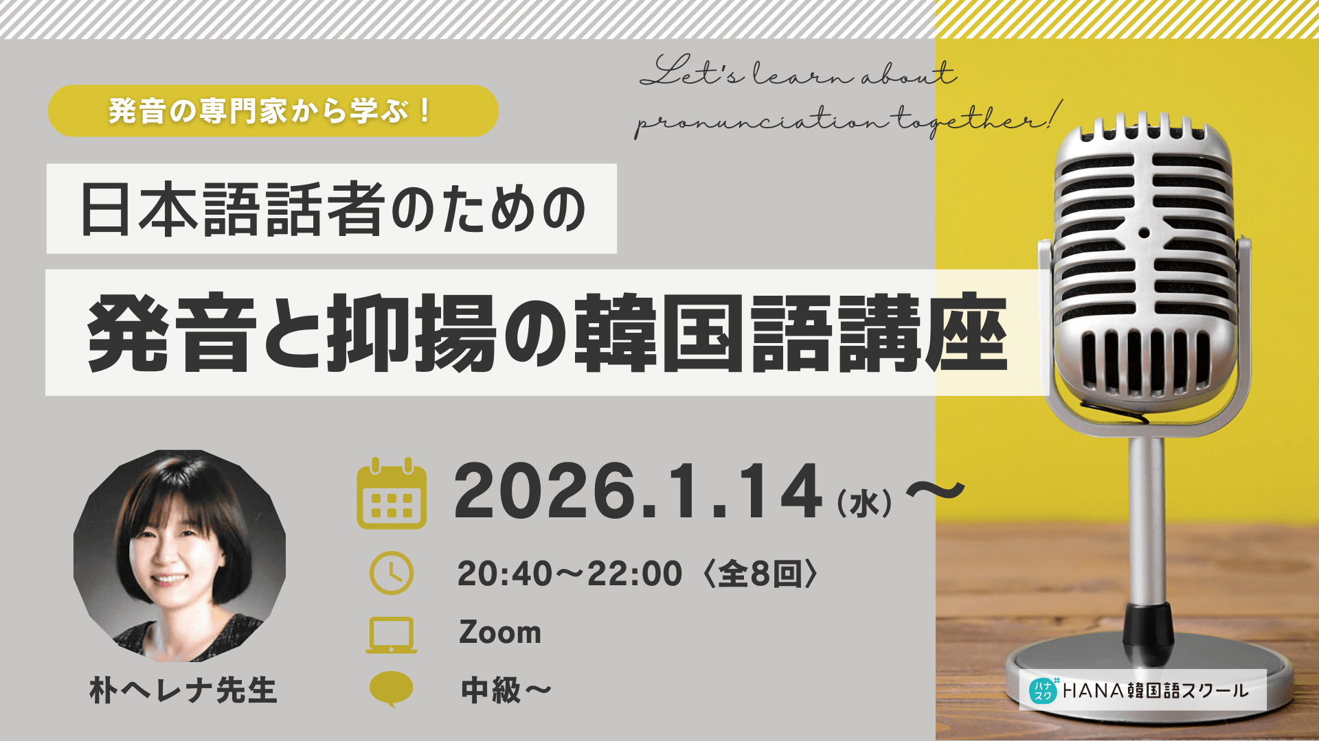 【1月開講】発音の専門家から学ぶ!日本語話者のための発音と抑揚の韓国語講座〈全8回〉