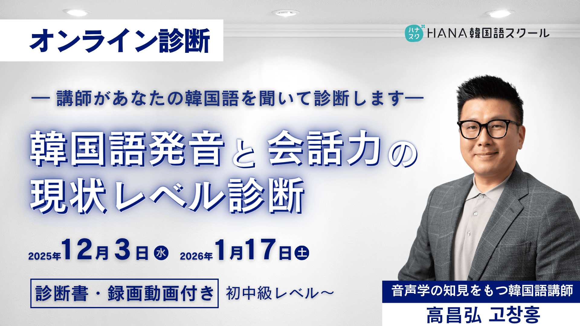【12月・2026年1月のオンライン診断】韓国語発音と会話力の現状レベル診断(診断書付き)