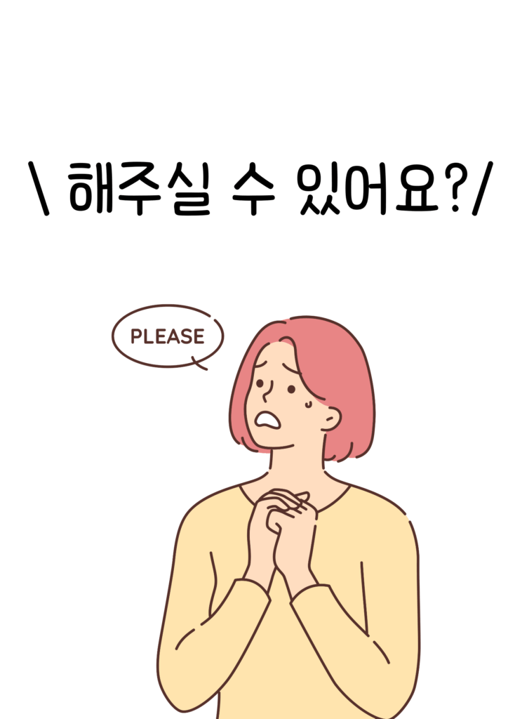 一方、韓国語ではこのような婉曲的な依頼表現に使われるのはもっぱら주시다です。–아/어 주실 수 있어요?や、–아/어 주시면 안 돼요?などがあります。