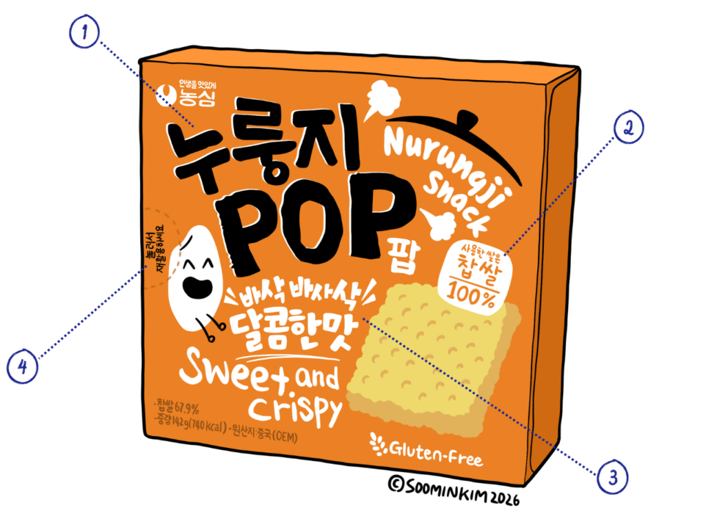 商品パッケージの韓国語には、そのお菓⼦がどんな味で、どんな成分が⼊っているのかといった内容はもちろん、⽣きた⽇常表現と実⽤的な⽂法が込められています。