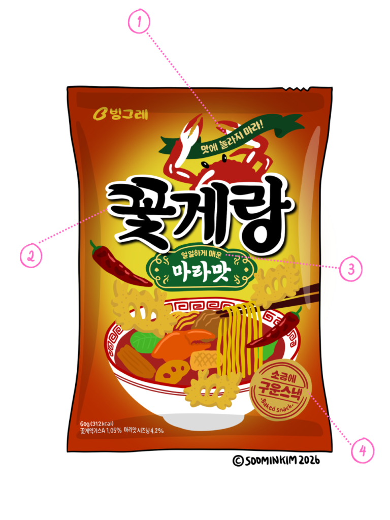 商品パッケージの韓国語には、そのお菓⼦がどんな味で、どんな成分が⼊っているのかといった内容はもちろん、⽣きた⽇常表現と実⽤的な⽂法が込められています。